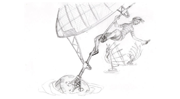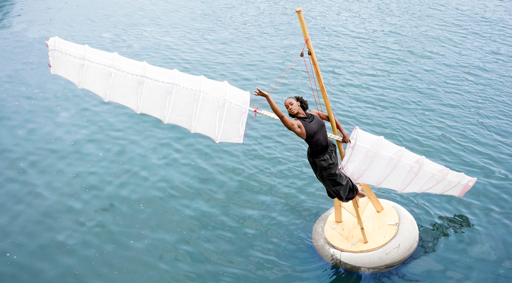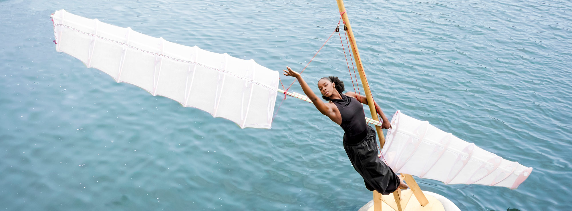 Met ‘De luie, nieuwsgierige, innovatieve mens’ spelen we met het overwinnen van de zwaartekracht in circusbeweging en beeldontwerp door boven het wateroppervlak uit te klimmen, op het water te balanceren en we dagen ons creatief denkvermogen uit in beeldende suggestieve creaties.